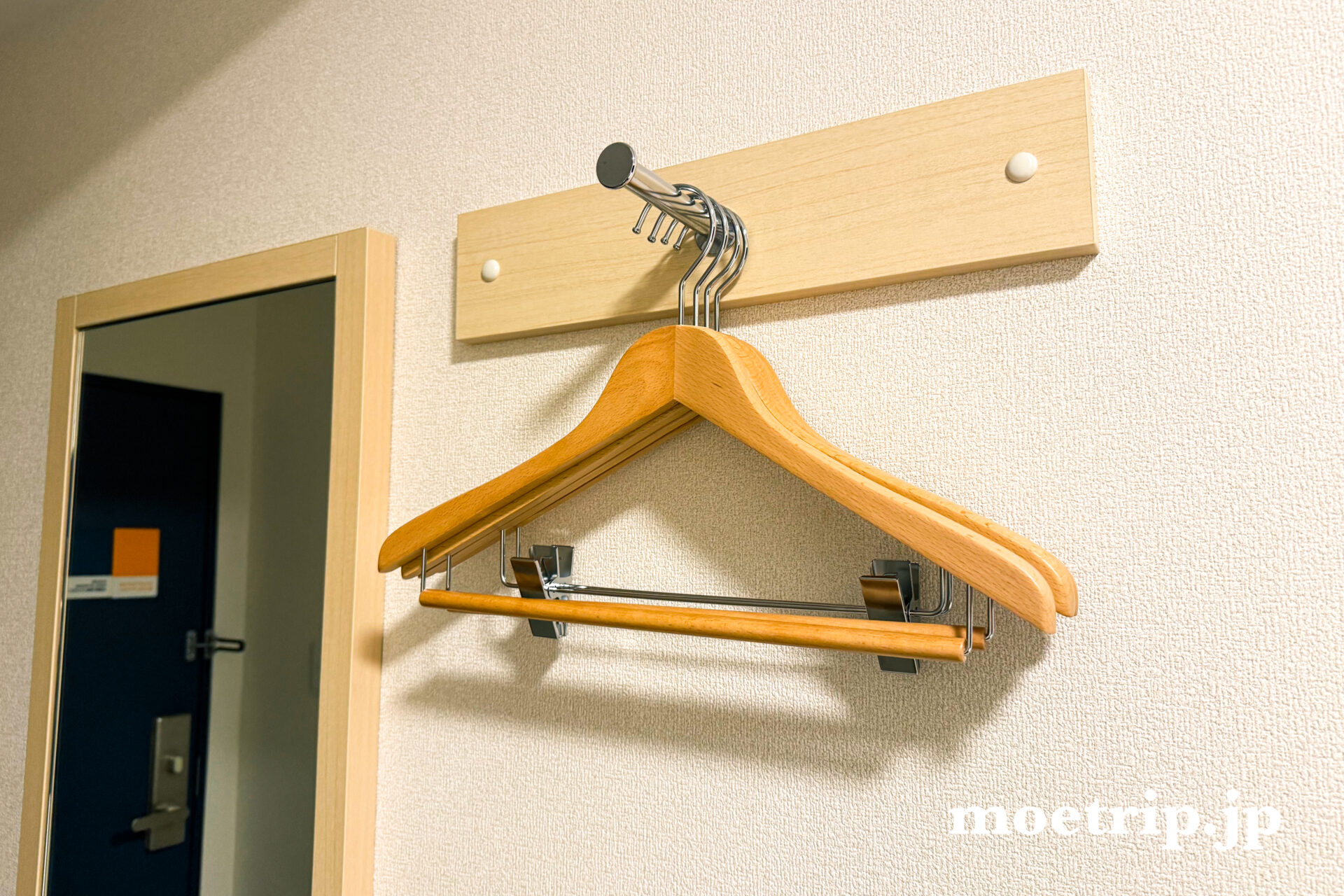 狭いのでクローゼットはありませんが、壁に備え付けられたハンガー。