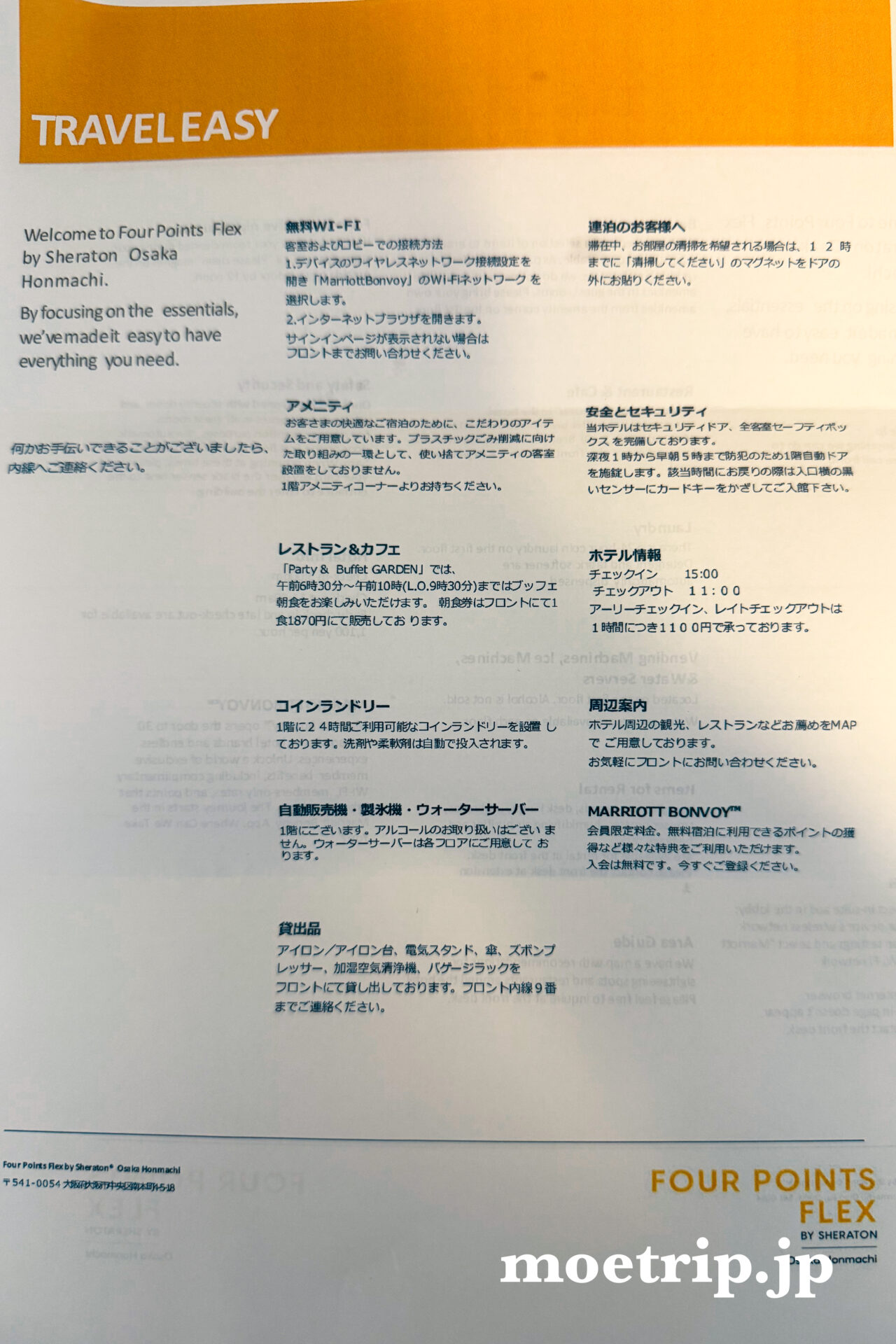 フォーポイントフレックスbyシェラトン大阪本町における、マリオットボンヴォイ・プラチナ会員特典をまとめます。