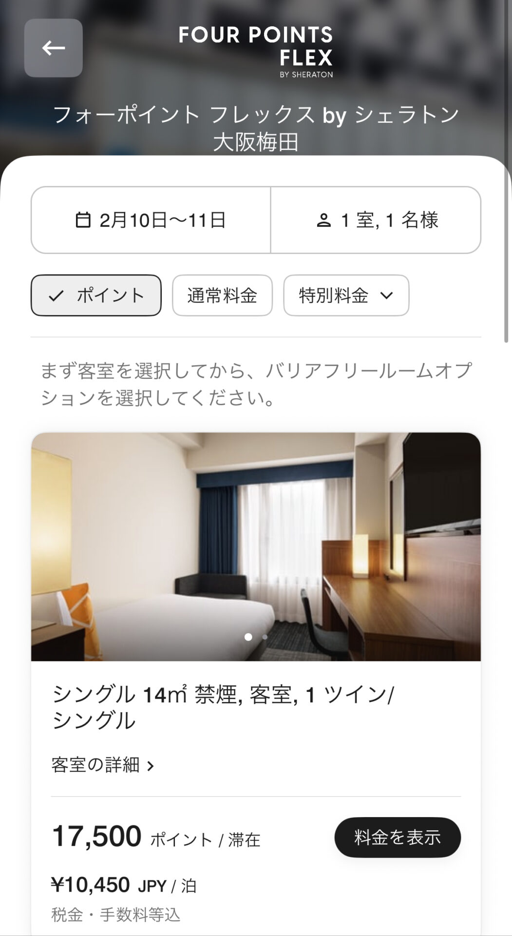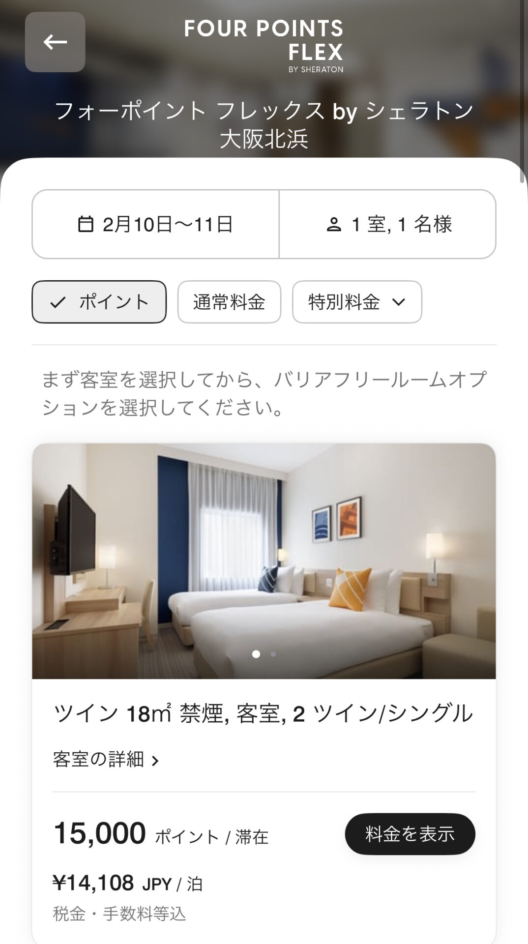 ここで無料宿泊特典を使うのは少し!勿体ないので、現金かポイントで宿泊するのがおすすめです👍