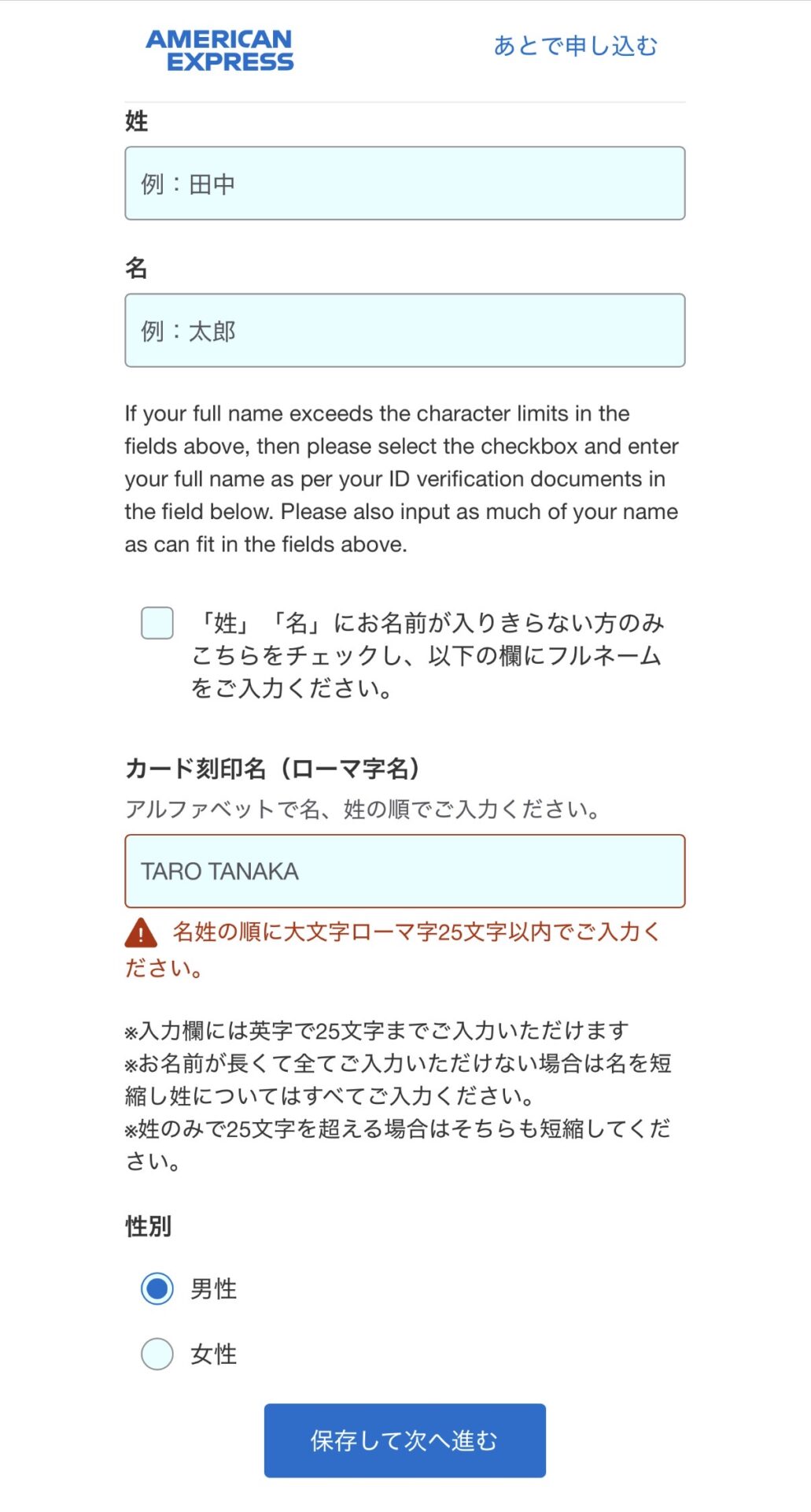 名前の入力間違いには十分に気をつけてください。
