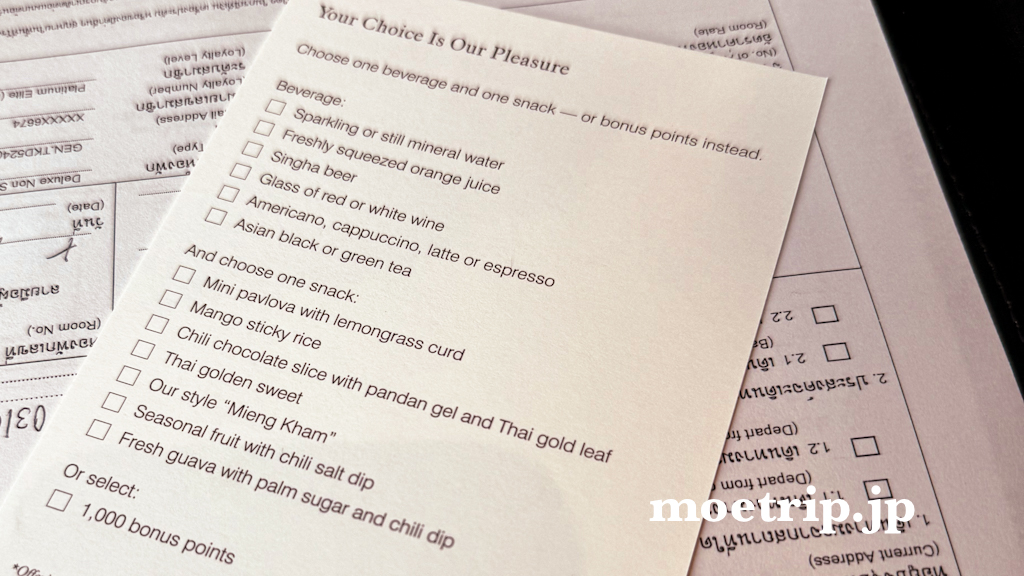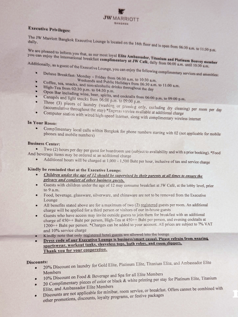 実際に私が「JWマリオット ホテル バンコク」で受けられた特典はこちらです: