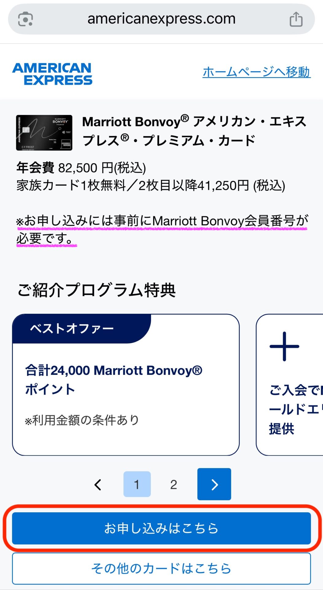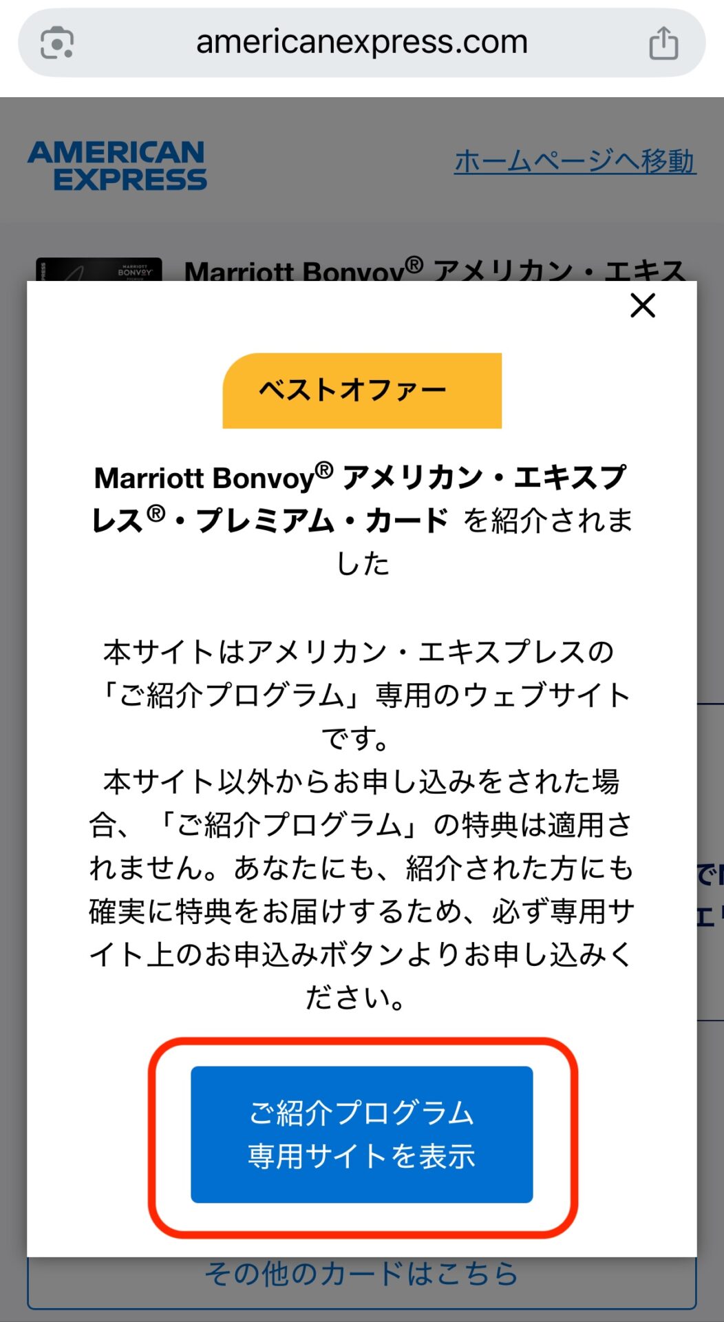 1分以内に紹介メールが届きますので、メールに記載のURLリンクから「マリオットボンヴォイアメックスカード」にお申し込みください。