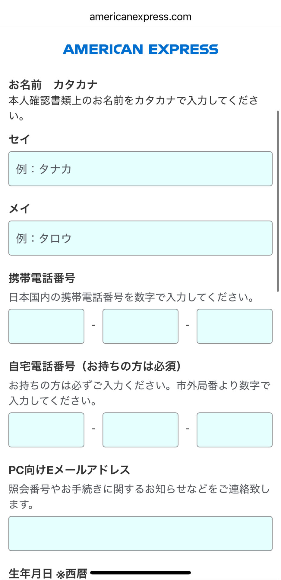 「お申し込みはこちら」をタップ後、下記の画面に遷移するので、本人情報を入力しましょう。
