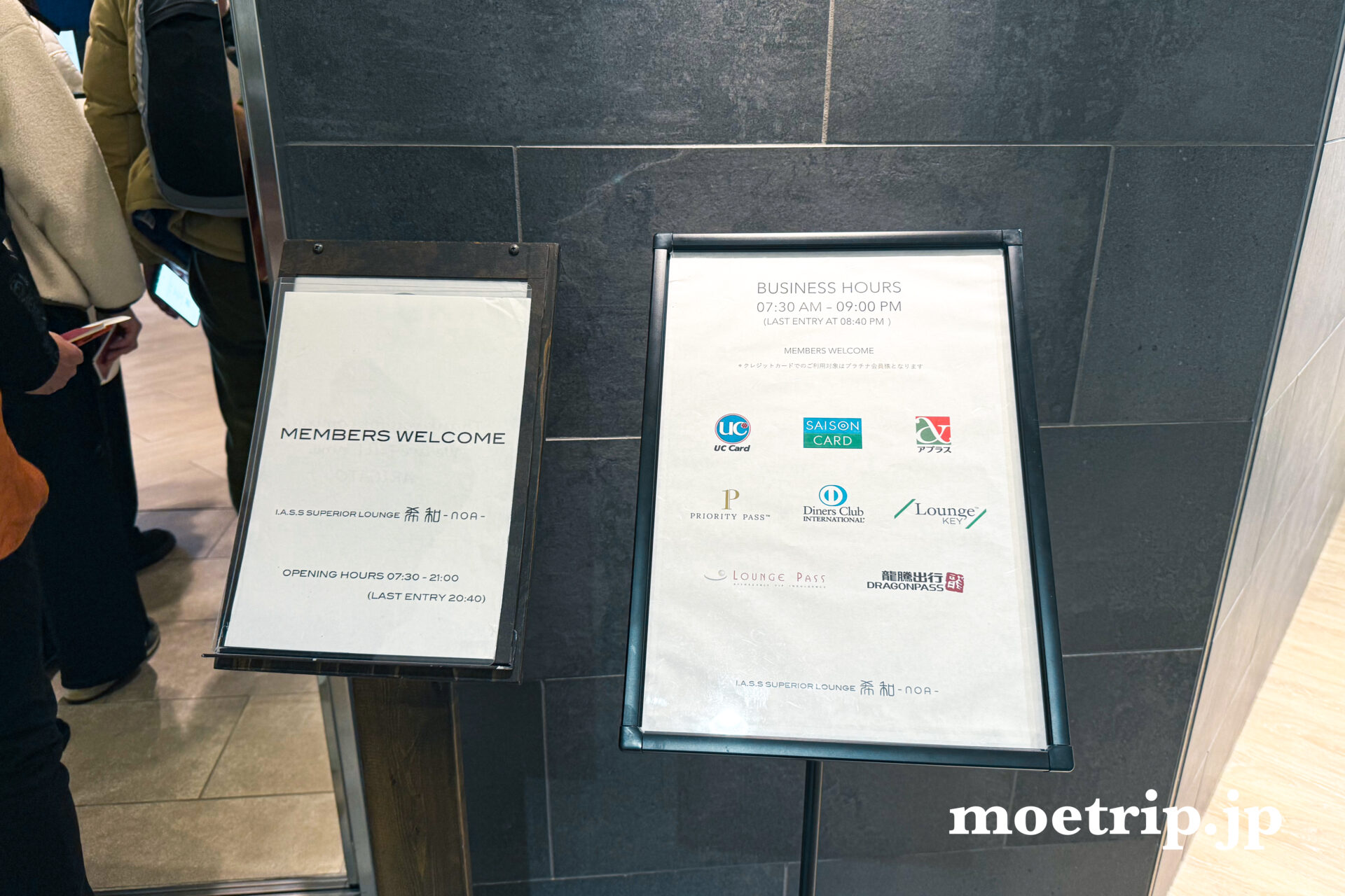プライオリティ・パスのカード当日の搭乗券を提示することで、「I.A.S.S Superior Lounge -NOA-」を利用することができます。