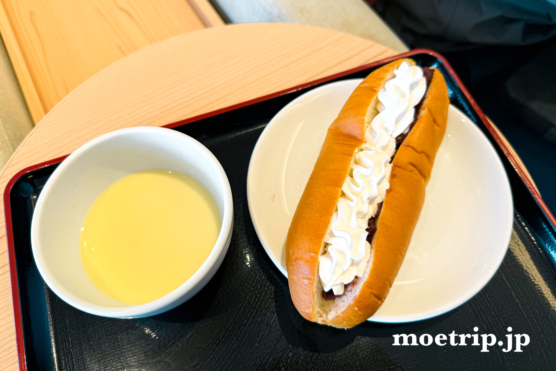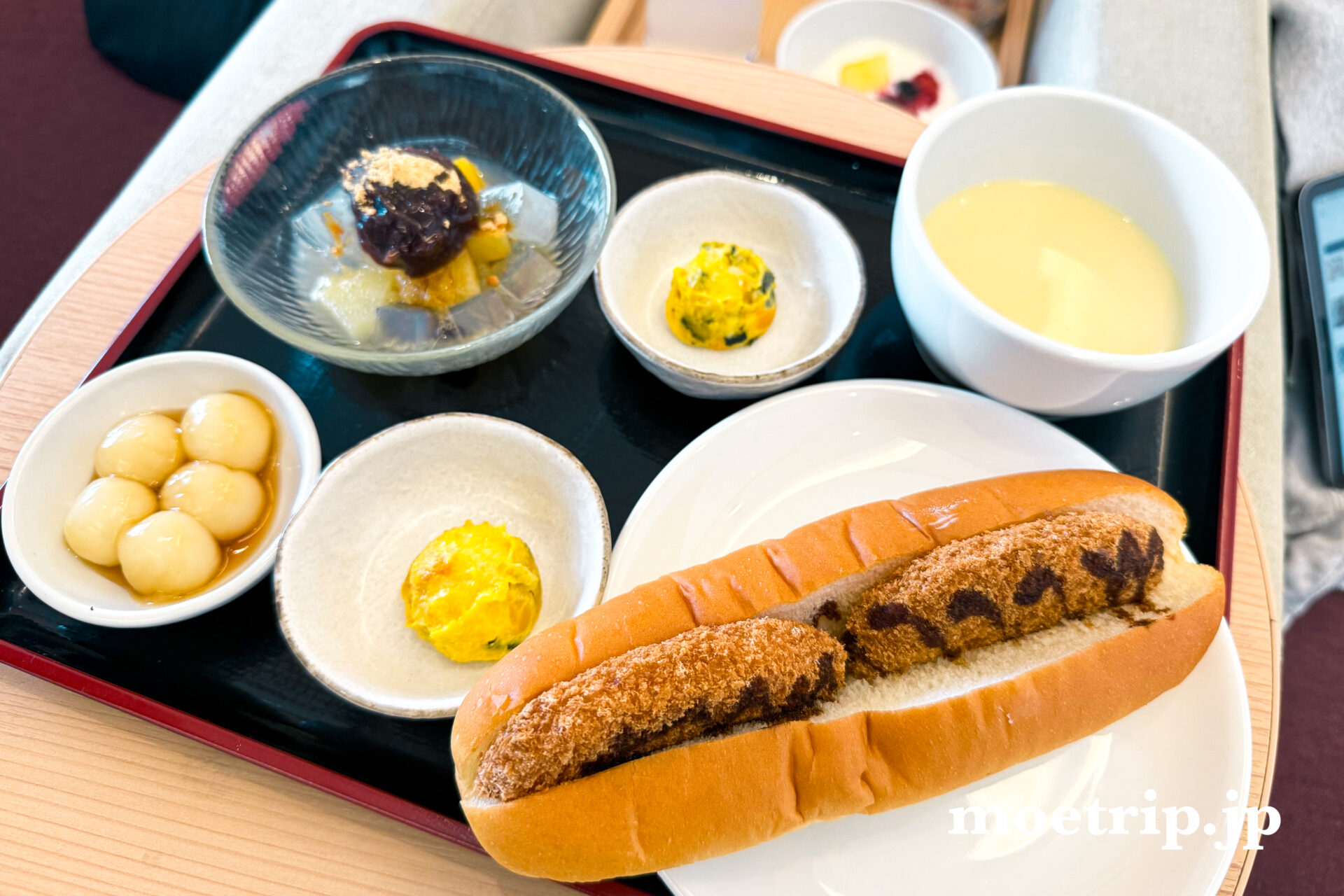 モーニングセットのコロッケパン(※みたらし団子とあんみつは別オーダー)