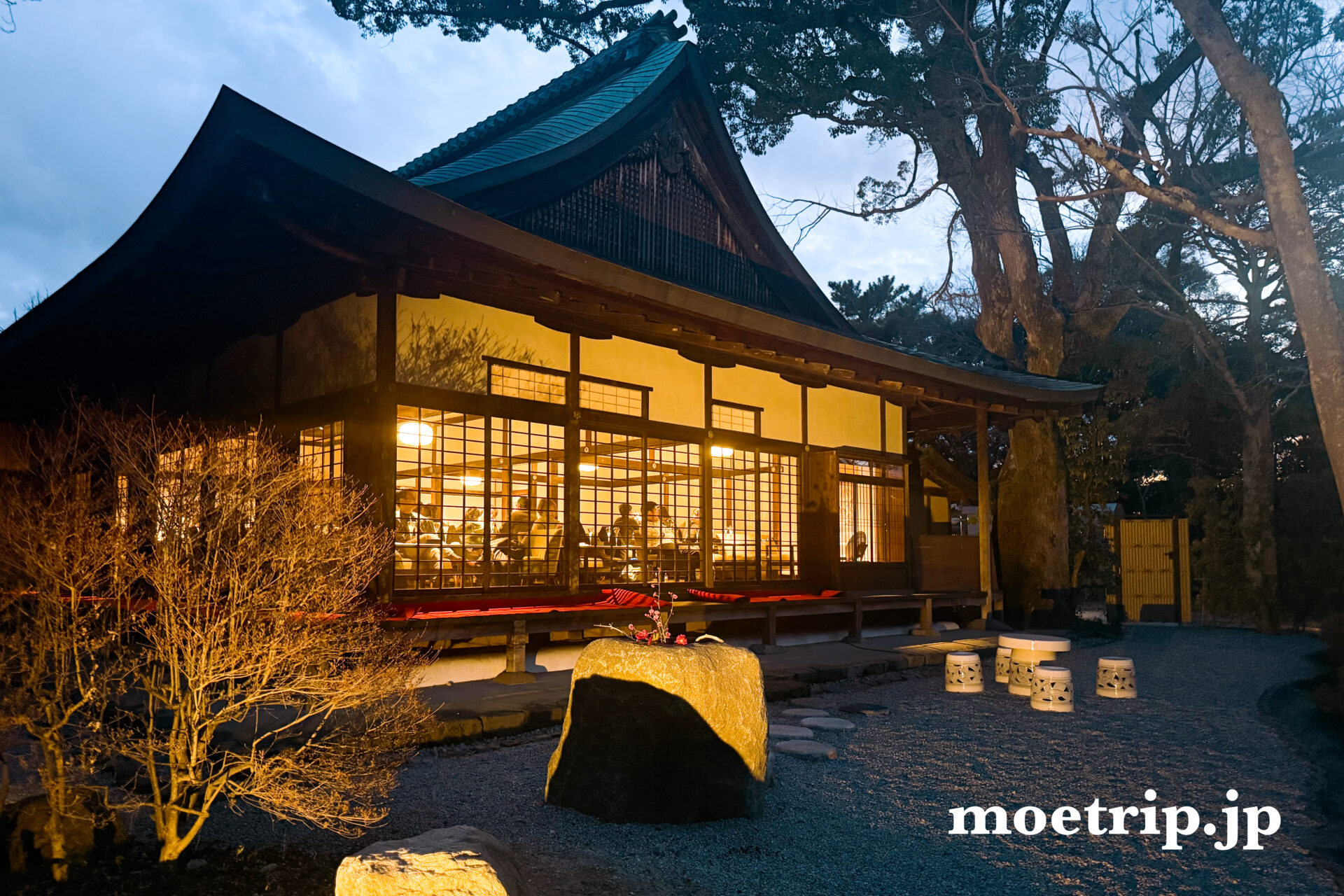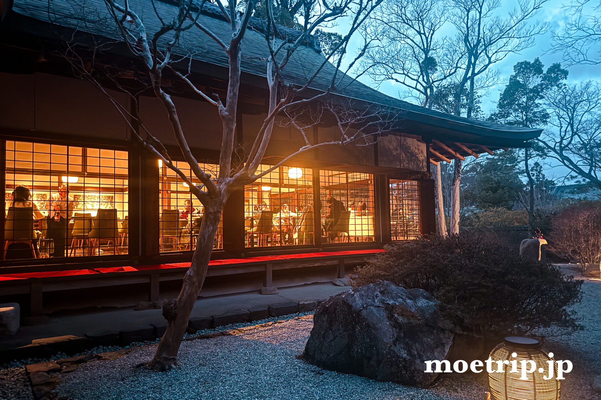 旧奈良県知事公舎をリノベーションした歴史的建築で、昭和初期の面影を残しつつ現代的な洗練さが加わった和モダンな佇まい。写真撮りたくなる外観です。笑