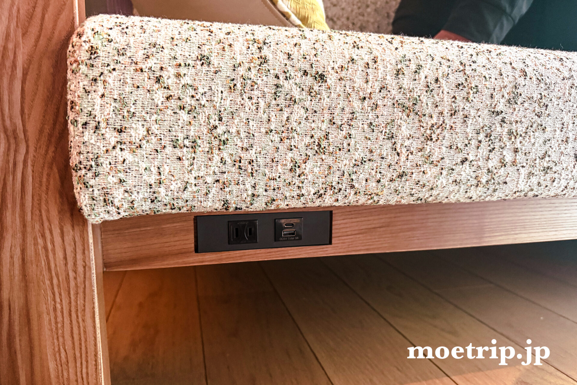 地味に嬉しい、ソファの下にはコンセントがありました。